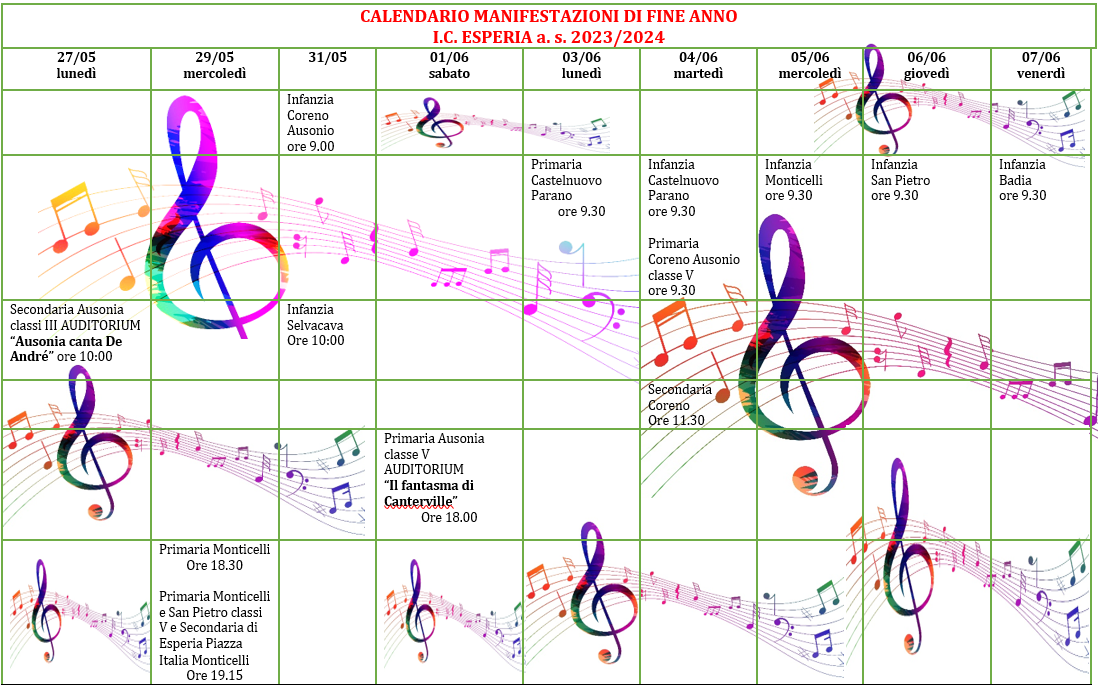 Manifestazioni di fine anno scolastico